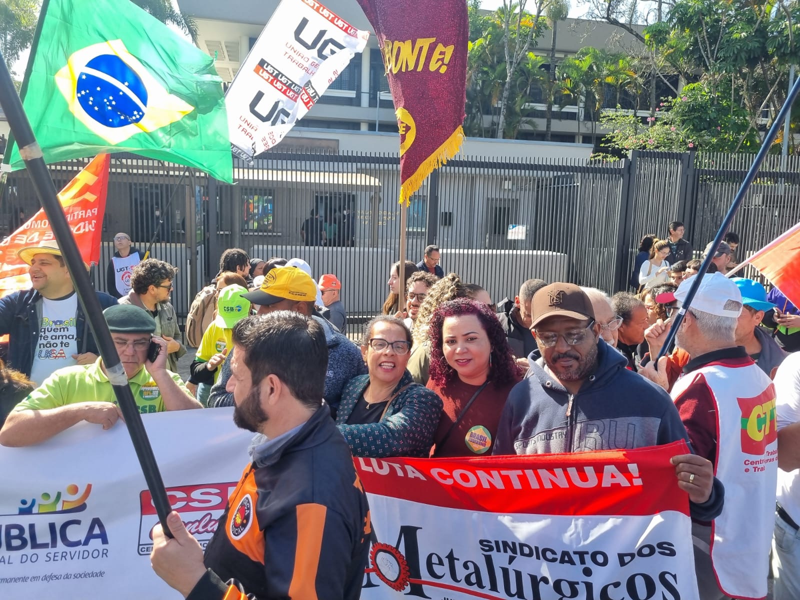 Os dirigentes Rose Prado, André Latino, Willian Pereira Reis e Leonice Maria da Silva (Leo), estiveram ao lado do presidente da Federação dos Metalúrgicos do Estado de São Paulo, Eliseu Silva Costa, apoiando a mobilização e reafirmando nosso compromisso com a soberania nacional, a democracia, a justiça social e o desenvolvimento com dignidade e inclusão.